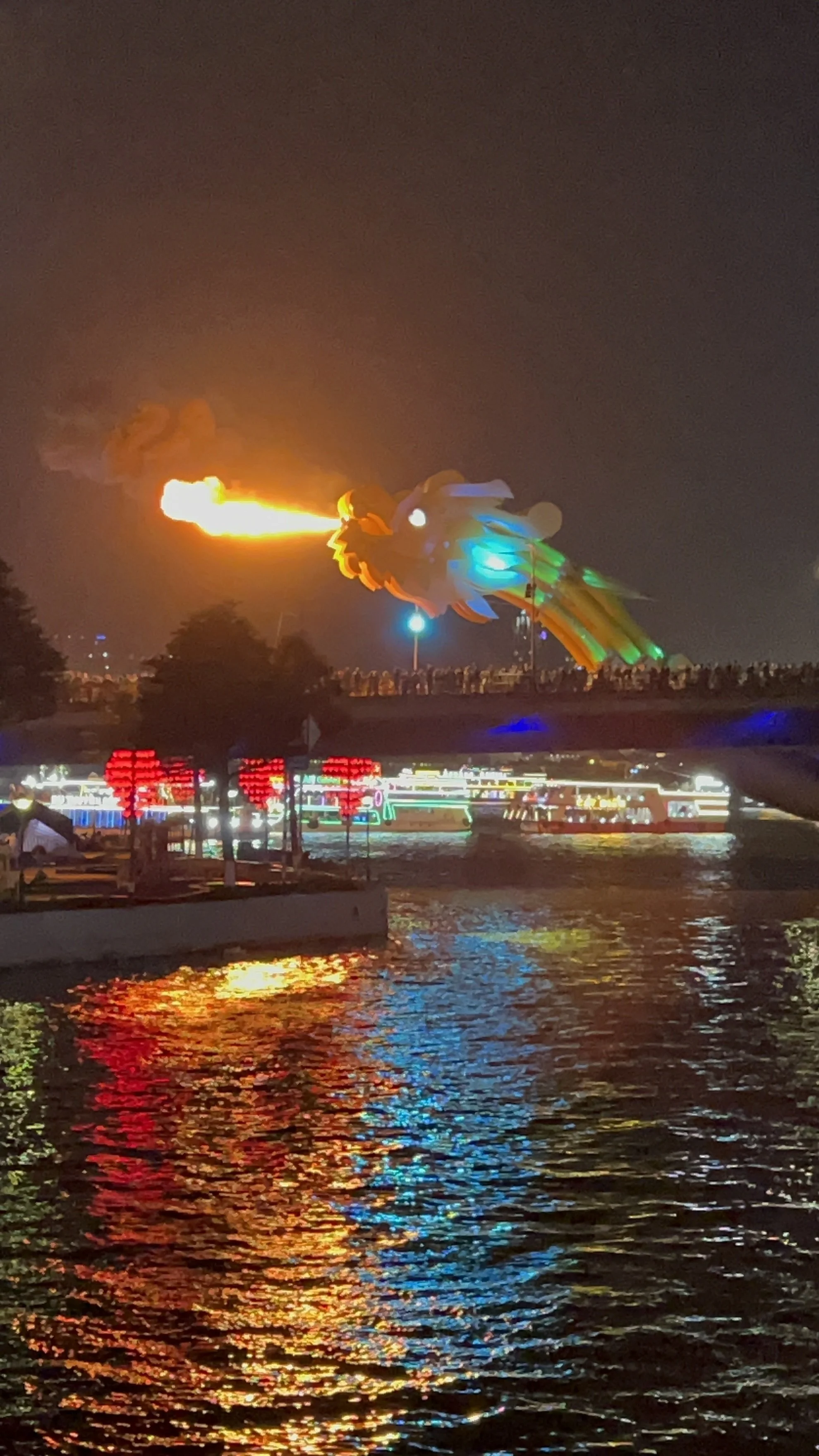 Das berühmte Spektakel beginnt eigentlich erst um 21 Uhr. Dann wird die Brücke gesperrt, tausende Menschen versammeln sich am Ufer, und der Drachenkopf speit erst Feuer, dann Wasserfontänen. Leider sind wir zu früh dort um dies zu erleben. Glücklicherweise bekommen wir die Fotos vom feuerspeienden Kopf bekommen später von einem besonders mutigen AIDA-Gast zugeschickt, der bis zur letzten Minute auf der Brücke ausgeharrt hat, bevor er im Laufschritt zurück zum Hafen musste. Für uns endet der Tag daher in einem Café nahe der Drachenbrücke mit einem starken vietnamesischen Kaffee, den wir so lieb gewonnen haben. Es war wirklich ein traumhaft schöner Tag mit Huyền und wir haben das Gefühl Vietnam wieder ein kleines Stück besser kennengerlent zu haben. Auch freuen wir uns über zahlreiche Fotos von uns, da Huyền sehr aktiv und ohne Unterlass uns für ein Foto vor den Sehenswürdigkeiten platziert hat. Solltet Ihr euch mal fragen, wie ihr an tolle lokale Guides an eurem Reiseziel kommt, dann sei euch die Website withlocals ans Herz gelegt.